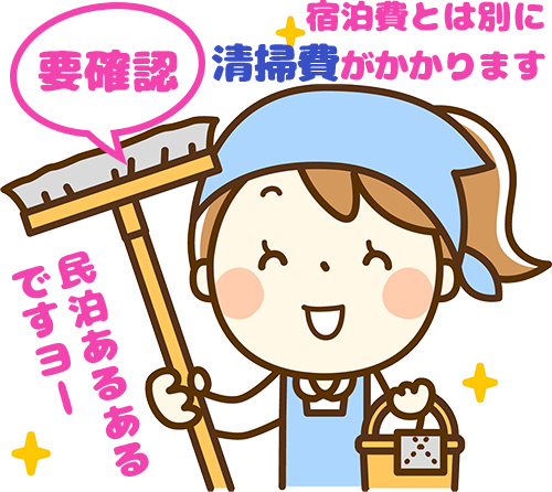 当店に限らず【民泊】は清掃料が別にかかる場合が多いので、ご予約前に必ず確認するようにしましょう。