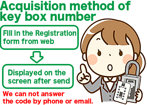 The "key box code" will be notified after the procedure of "fill in the Registration Form".